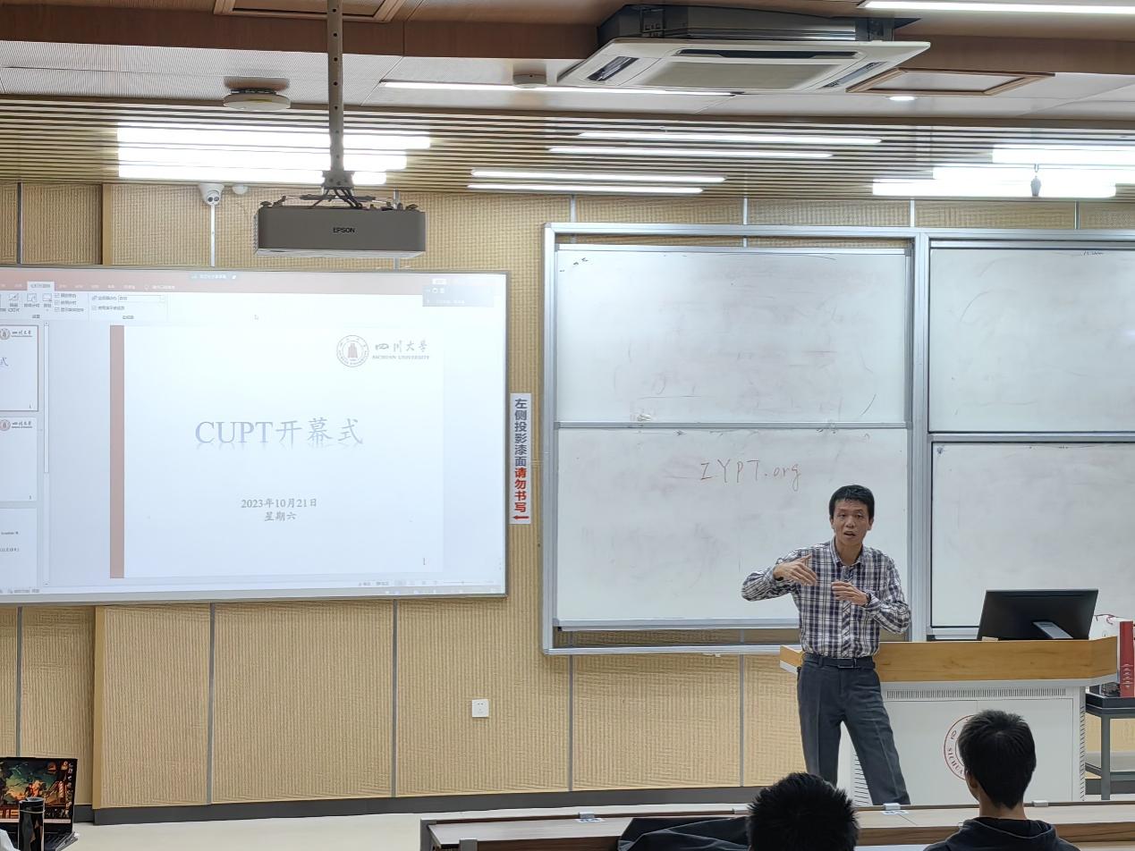 2023年10月21日下午19点30分,由tyc5997太阳集团员工学术科技协会主持的第十五届中国老员工物理学术竞赛(CUPT)tyc5997太阳集团选拔赛开幕式于江安校区综合楼C座104教室举行,并通过腾讯会议线上同步直播。本次活动到场的嘉宾有tyc5997太阳集团副经理周荣、tyc5997太阳集团CUPT指导老师林方、上届CUPT国赛队员以及负责本年度CUPT的同学们,开幕式由tyc5997太阳集团的刘熙瑶同学主持。