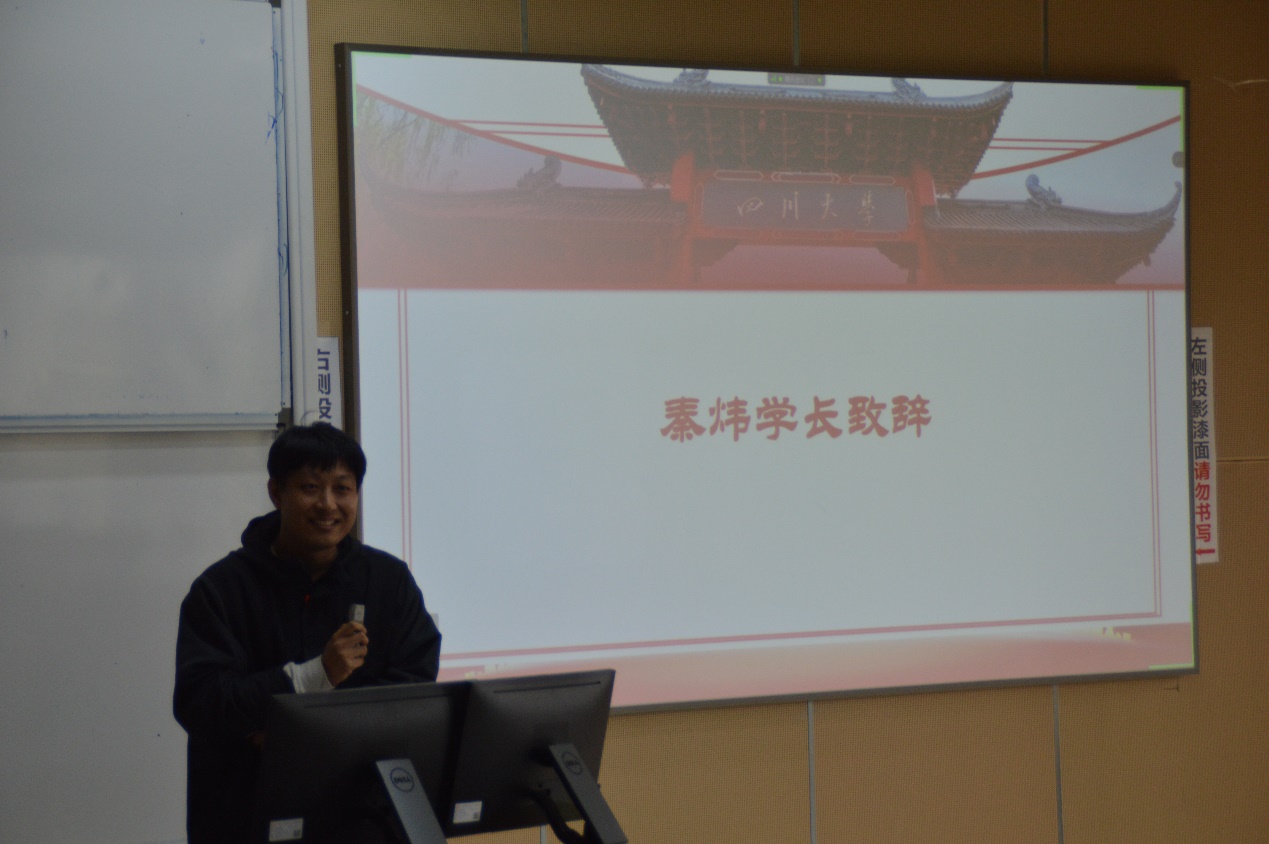 随后,唐禹老师宣读获奖同学名单,他们分别是2020级袁旗、康晏杰、周昊杰,2021级武霖婧、张冠宏、刘镇源。张冠宏同学代表获奖同学发言,他用真诚的言语表达了对曾烁学长的敬意与缅怀。张冠宏同学表示将坚持不懈,奋力拼搏,携手前行,共创美好未来。