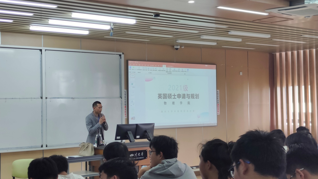 王老师首先为同学们介绍了公司员工历年出国留学深造的相关数据统计情况,分析了出国留学在学术能力以及就业前景、环境等方面的优势。王老师针对公司员工的专业特点,详细介绍了英国知名大学的招生情况和录取要求。最后,王老师鼓励同学们为出国升学提前做好准备与规划,积极参加大川视界、国际交流周等项目,对出国留学提出了时间安排上的建议,并和大家分享了如何准备托福、雅思考试。