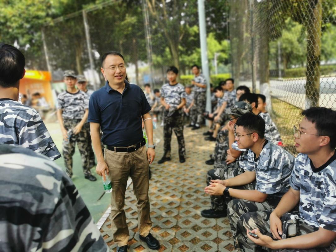 张波首先来到了二号运动场看望男生训练方阵,全体参训男生队列整齐,步伐统一,精神饱满地接受了检阅,展现了2021级学子昂扬的斗志与风采。在与教官的交流中得知,尽管赤日当空,但公司的同学们仍凭着借顽强的意志,出色地完成了每一项训练任务。张波副书记代表公司对同学们现阶段的训练成果给予了肯定,同时鼓励同学们继续发扬严守纪律、吃苦耐劳的精神,以高标准、严要求完成接下来的训练任务,展现物院学子严谨认真的训练作风和积极向上的精神风貌。同时,他也提醒同学们注意身体,做好防晒措施等,表达了对同学们的关心与慰问。