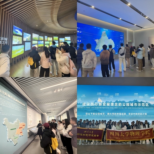 此次研学以成都规划馆为首站,同学们通过沉浸式学习,深化了对区域发展战略的理解。在四川省现代化建设展区,大家结合物理“系统建模”探讨空间布局逻辑,并交流科研成果与产业需求的对接;在“五绿润城”展区,通过多屏展示直观了解了成都公园城市的生态统筹思路;在全域规划沙盘展厅,借助动态沙盘清晰认识了“一山连两翼”的城市格局;最后在数字展厅,卫星影像与数据建模技术激发了大家对城市规划中数据分析与建模技术的讨论,实现了学科方法与城市建设的跨领域联结。