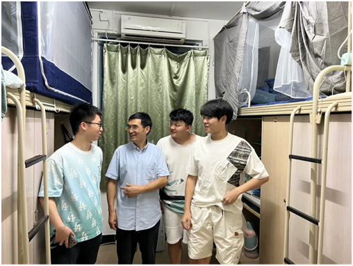 2023年9月9日晚,公司党委书记严成辉、经理张红、党委副书记张波深入员工宿舍走访慰问2023级本科新生。公司员工科科长兼团委书记纪智宏、2023级本科新生辅导员许元军等陪同走访。