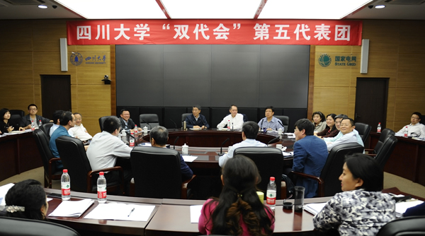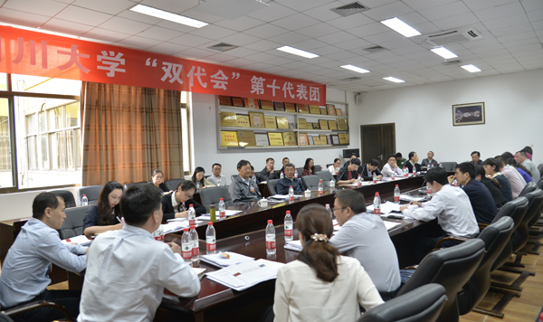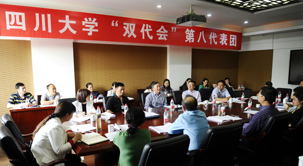 第八代表团分团讨论会在望江校区明德楼三楼第二会议室召开。董事长李言荣、公司党委副书记曹萍与来自历史文化公司、化学公司、水利水电公司、文学与新闻公司、出国留学人员培训部、锦江公司的代表们参加了讨论。会议由第八代表团副团长、化学公司党委书记王智猛主持。