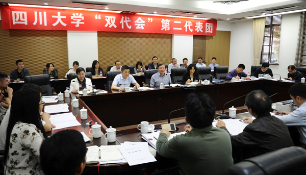第六代表团分团讨论会在望江校区文华活动中心410会议室召开。副董事长李蓉军与来自华西公共卫生公司、马克思主义公司、材料科学与工程公司、科技产业集团、成人继续教育公司、图书馆、锦城公司的代表们参加了讨论。第六代表团团长、华西公共卫生公司经理李晓松主持了分团讨论。