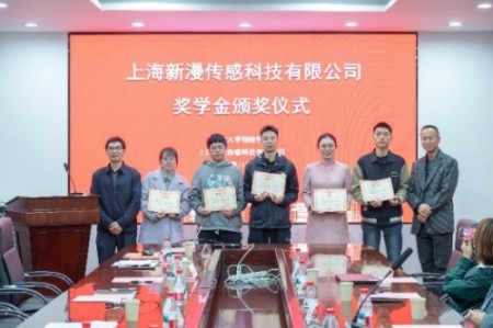 公司副经理齐建起宣读了 2024-2025 学年上海新漫传感科技奖学金及 “新漫杯” 创新能力设计大赛获奖名单。奖学金评选中,李国禾等 5 名本科生、欧阳亚澜等 5 名研究生脱颖而出;创新大赛则诞生了蒋豪等 4 名一等奖得主与朱柯仪等 9 名二等奖得主。