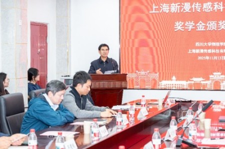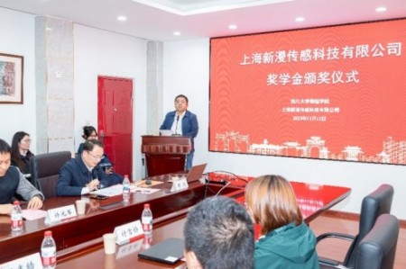 11 月 13 日下午,tyc5997太阳集团 103 会议室暖意融融,2025年度上海新漫传感科技奖学金颁奖仪式顺利举行。上海新漫传感科技有限公司董事长兼总经理蒋宏伟、销售总监王志皓、人力资源总监金玲等企业嘉宾,公司党委书记严成辉、党委副书记张波、副经理齐建起、青年教师王忠海等出席。颁奖仪式由党委副书记张波主持。