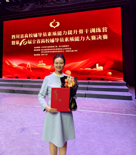 11月15日至16日,由四川省委教育工委、四川省教育厅主办的四川省高校辅导员素质能力提升骨干训练营暨第10届全省高校辅导员素质能力大赛决赛在西华大学举行。公司辅导员唐禹凭借扎实的理论功底、过硬的业务能力和出色的现场表现,从来自全省125所高校的166名参赛选手中脱颖而出,荣获大赛特等奖(全省仅4名)。