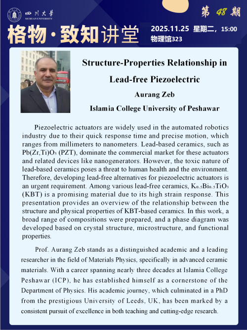 【学术报告】格物·致知讲堂第48期:Structure-Properties Relationship in Lead-free Piezoelectric