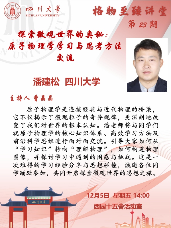【学业指导】格物·至臻讲堂第23期:探索微观世界的奥秘——原子物理学学习与思考方法交流