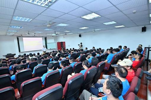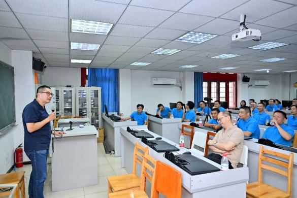 公司党委副书记兼纪委书记陈笃海,龚敏教授、范嗣云老师、吴家刚经理分别上台发言,几位老师抚今追昔,介绍公司的现状,展望公司未来的发展,希望员工们2026年共聚物理学科100周年。老师们热情洋溢的发言极具感染力,殷切地期待员工们能多回家看看。老师们真挚的发言,赢得了同学们持久不息的掌声。