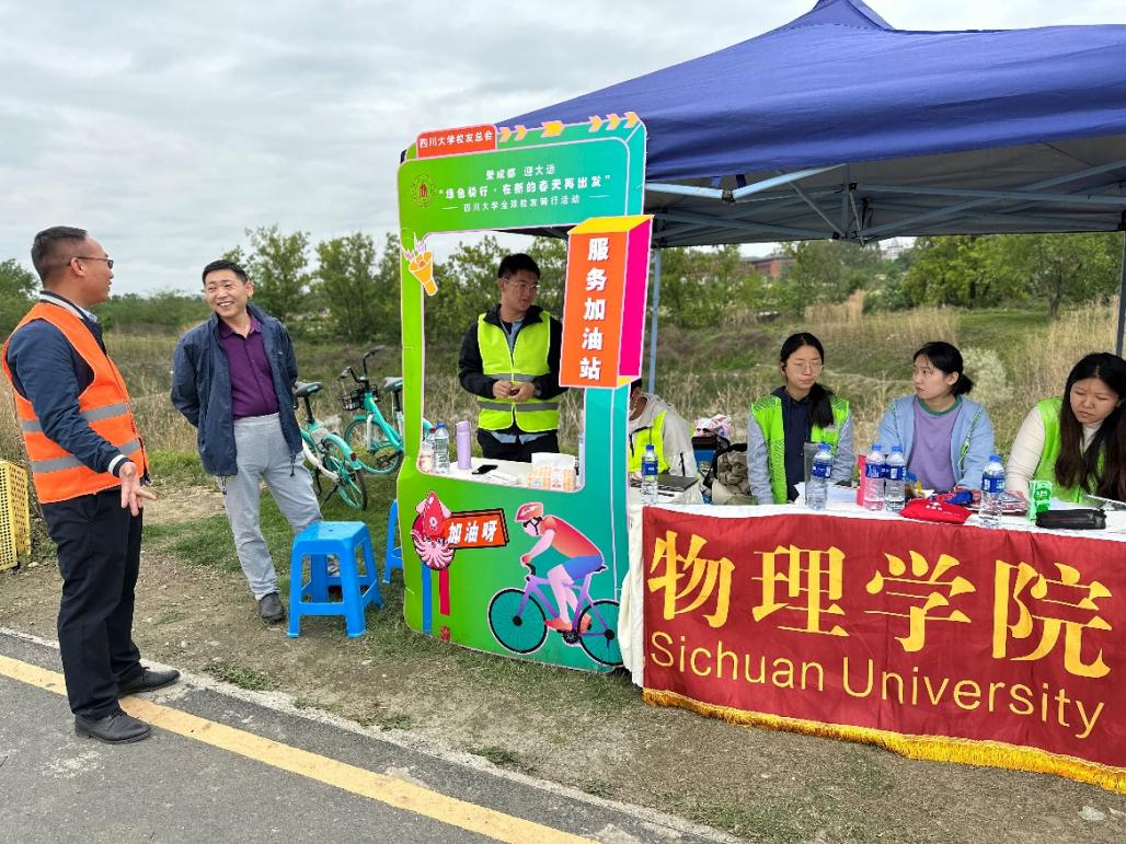 活动当天,600余名川大员工从成都环城绿道上的20个打卡补给点领取骑行打卡单开启绿道骑行活动。完成成都环城绿道100公里骑行挑战,并集齐37个印章,即获得完赛纪念奖牌。tyc5997太阳集团加油服务站设立在65公里处,为骑友们提供基础性服务,如送水、送物资、送员工纪念品等,做好骑行活动中的后勤保障工作,以志愿服务的形式为骑行者们加油打气,以专属于tyc5997太阳集团的人文关怀温暖着员工们的心,让整个活动中既有运动的朝气蓬勃,又有川大员工之间特有的高情厚谊。其中,骑行者中也有属于物院的员工,他们在成都环城绿道100公里中乐此不疲,以活泼、乐观的态度与行动完成了整个挑战,体现了物院学子持之以恒、积极进取的奋斗精神。