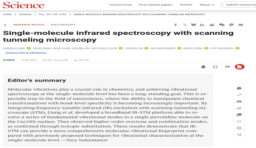 2026年2月19日,加州大学圣地亚哥分校(UCSD)李绍巍团队在《Science》发表突破性成果,报道了一种新型红外集成扫描隧道显微镜(infrared-integrated STM, IRiSTM)技术。公司2016级员工梁康楷与2019级员工全洧可为该论文的共同第一作者。