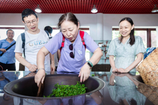 2024年6月19日,物理实验教学中心工会小组在校、院两级工会的大力支持和指导下,开展了一次别开生面的团体活动,活动主题为“蒙顶山学习茶文化,发扬传承红色基因”,本次活动旨在让老师们学习了解传统茶文化与红色革命基因,传承红色精神,弘扬中华传统文化。团体活动主要包括两项内容,第一项内容是采茶、制茶并参观茶文化博物馆,第二项内容是参观红军长征纪念馆——红军百丈关战役纪念馆。